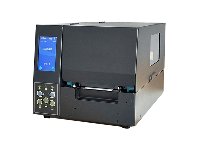 岳冉PRT15 UHF工业触屏款RFID打印机是一款工业级大尺寸全彩触控屏多用途RFID标签打印机。其工作频率为902-928MHz,支持对 ISO18000-6C协议的电子标签读写打印操作。该款打印机为金属框架,外观大气,内部可放置8英寸直径的大标签卷。 大尺寸触控屏LCD显示,五个按键,三个指示灯,方便设置打印机参数; 穿透式感应器和反射式感应器都可移动,识别标签更灵活; 支持打印同时RFID读写、仅打印或仅RFID读写; 支持多种规格型号芯片,可打印1.8mm厚度的柔性抗金属标签。